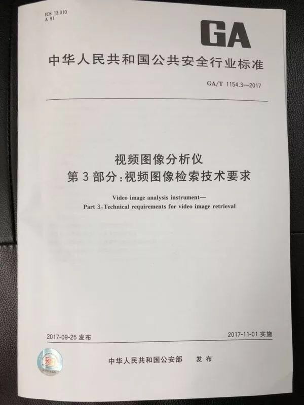 近日,中华人民共和国公安部发布行业标准GA/T 1154.3-2017《视频图像分析仪 第3部分:视频图像检索技术要求》。该部分由公安部社会公共安全应用基础标准化委员会提出并归口,由公安部第一研究所、xingkong.com科技参股子公司苏州千视通全资子公司深圳久凌软件技术有限公司等起草撰写,并于2017年11月1日起正式实施。